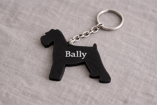 Een charmante 3D-geprinte hondensleutelhanger die een persoonlijke touch geeft aan uw dagelijkse accessoires. Verkrijgbaar in verschillende kleuren en volledig te personaliseren met een naam naar keuze. Elk exemplaar is lichtgewicht, duurzaam en met zorg vervaardigd.